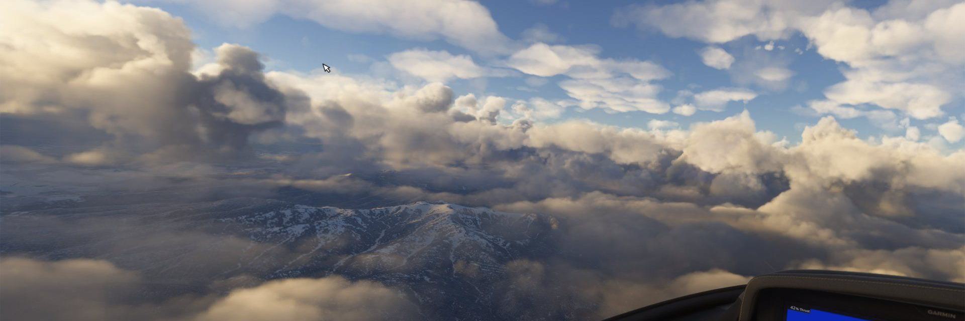 Auf Reiseflughöhe eröffnet sich der Blick auf die weite Landschaft der Insel: sanfte Hügel, vereinzelte Bergketten und ein Mosaik aus Landwirtschaft und Natur. Der Cirrus Jet gleitet präzise und leise durch die virtuelle Atmosphäre, perfekt kontrolliert über moderne Avionik.