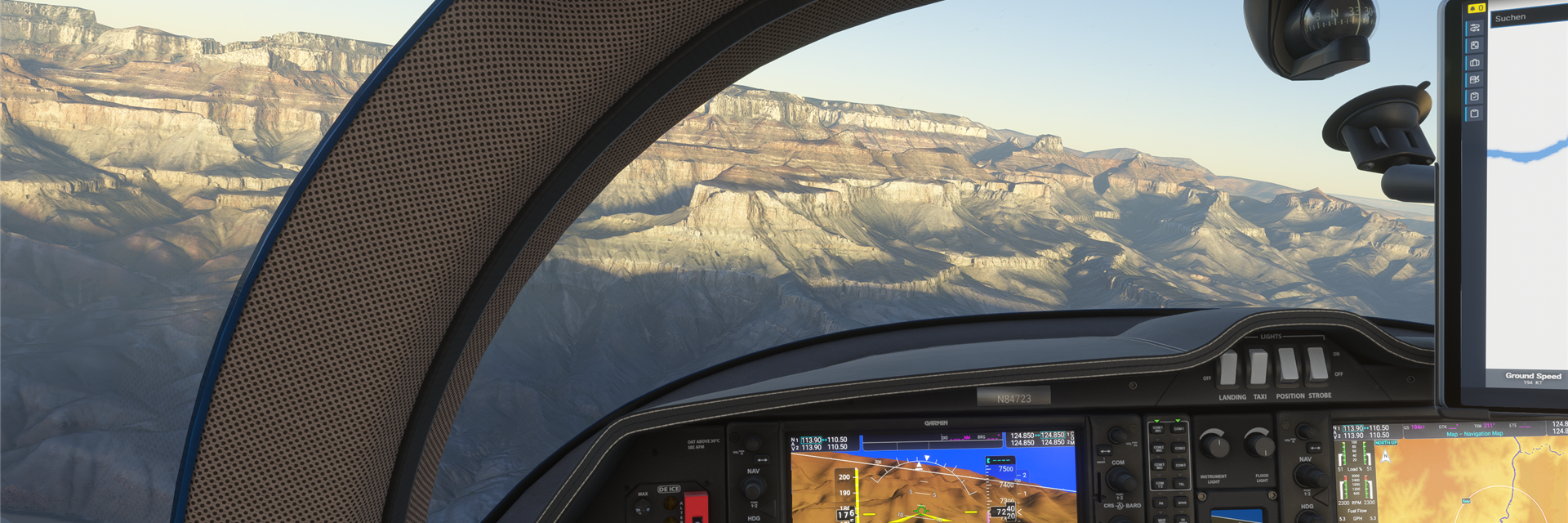 Einer der größten und beeindruckendsten Wunder der Welt der - Grand Canyon - ist auch für einen Flugsimulator ein optischer Prüfstein. Schon im Vorgänger, dem 2020 gab es bereits eine trefflich "Abbildung" des Canyons. Im 2024 jedoch haben wir jedoch eine Detail Genauigkeit der Felsmassive und des Bewuchses, die schon fast fotografisches Niveau aufweist.