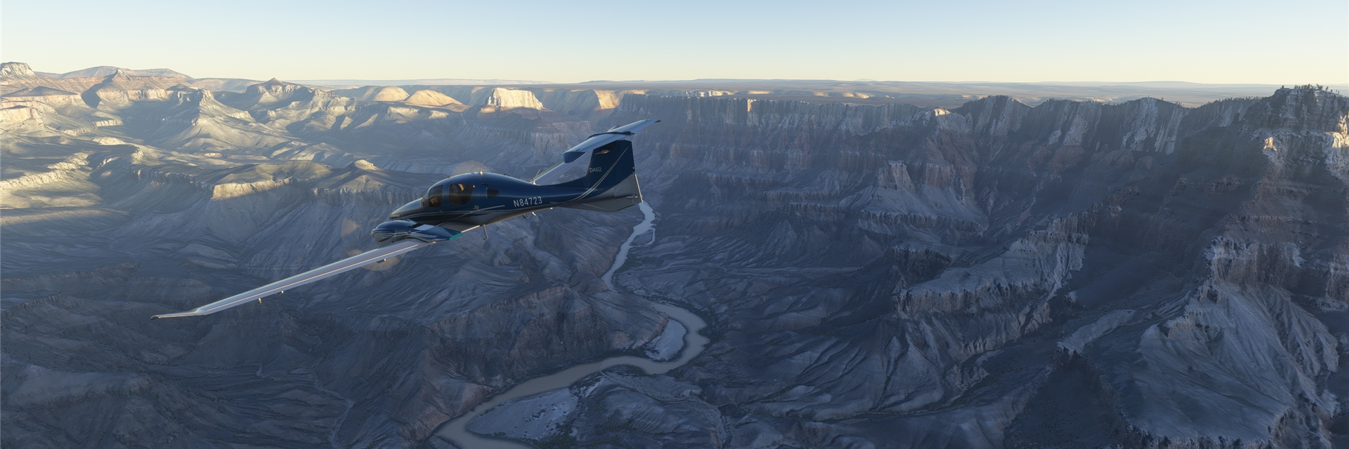 Einer der größten und beeindruckendsten Wunder der Welt der - Grand Canyon - ist auch für einen Flugsimulator ein optischer Prüfstein. Schon im Vorgänger, dem 2020 gab es bereits eine trefflich "Abbildung" des Canyons. Im 2024 jedoch haben wir jedoch eine Detail Genauigkeit der Felsmassive und des Bewuchses, die schon fast fotografisches Niveau aufweist.