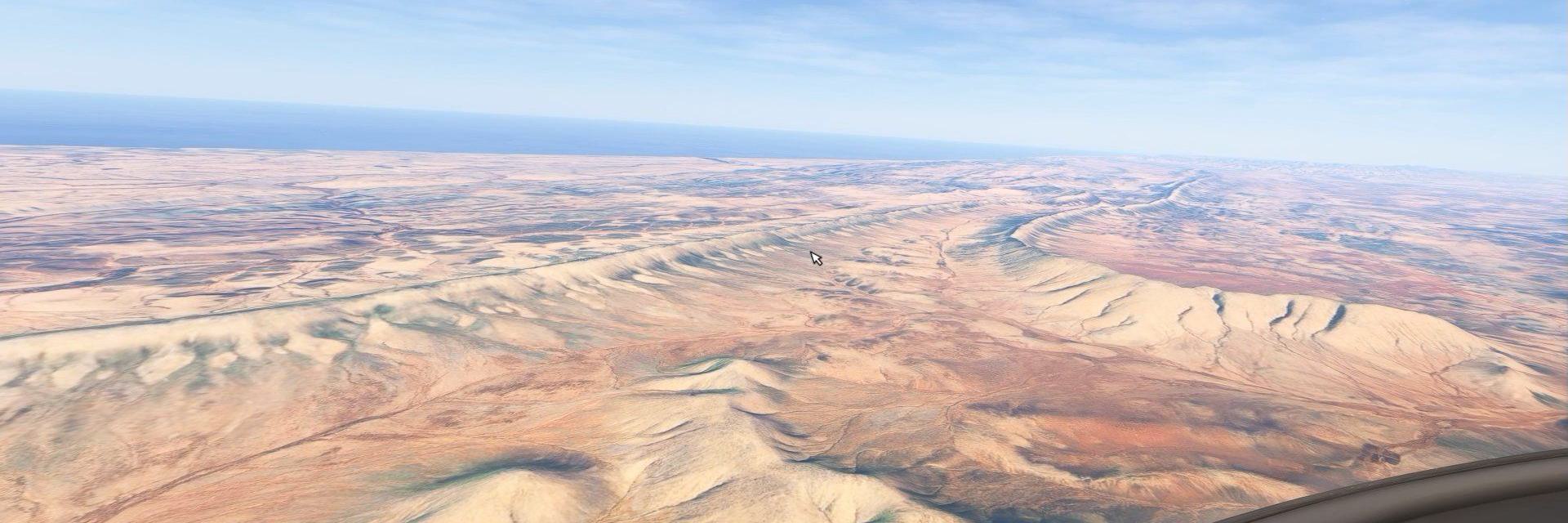 Die Sonne steht noch relativ hoch über dem Atlantic Ocean, als die Triebwerke starten. Das Cockpit ist ruhig, die Avionik erwacht mit einem leisen Summen. Nach der Startfreigabe rollt der Jet auf die Piste. Das Flugzeug beschleunigt, der Atlantik glitzert links – dann hebt die Maschine sanft ab. Kurz nach dem Start steigst du auf etwa FL50 (ca. 5.000 Fuß). Darunter breitet sich eine beeindruckende Landschaft aus: sandige Ebenen, vereinzelte Oasen und die endlose Küstenlinie. Der Flug führt nordwärts entlang der marokkanischen Küste. Links liegt die trockene, ockerfarbene Landschaft der Sahara-Ausläufer, rechts das tiefe Blau des Atlantiks. In der Ferne zeichnen sich langsam die ersten Ausläufer des Atlas Mountains ab. Der Cirrus Jet gleitet ruhig mit etwa 300 Knoten Reisegeschwindigkeit dahin. Die Luft ist ruhig, nur gelegentlich sorgen warme Aufwinde vom Land für leichte Turbulenzen. Nach rund 50 Minuten Flugzeit taucht die größere Küstenstadt Agadir am Horizont auf. Die breite Bucht ist schon von weitem zu erkennen. Sinkflug auf etwa 3.000 Fuß. Der Endanflug erfolgt über das Landesinnere. Die Landebahn des Flughafens Agadir–Al Massira sieht man bereits. Mit leicht reduziertem Schub setzt der Jet sanft auf der Piste auf.
